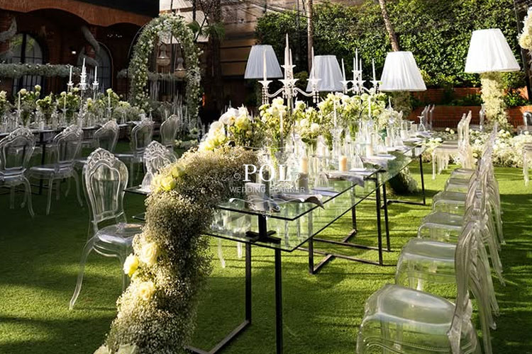دکوراسیون در این باغ تالار نیاوران معمولاً با ترکیب گلهای طبیعی، شمعآرایی و بکگراندهای سفید یا کرم اجرا میشود. تشریفات پل در برگزاری مراسم در نیاوران، از خدمات اختصاصی شامل سفره عقد کلاسیک، گلآرایی طبیعی و منوی متنوع غذایی بهره میبرد.